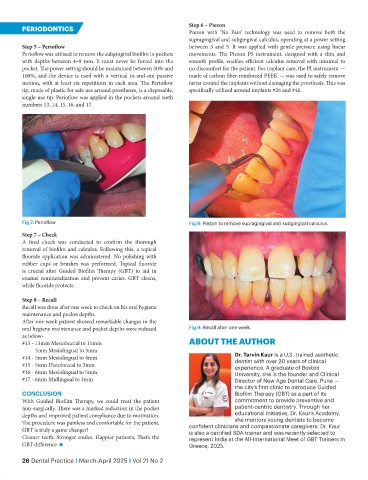pocket. The power setting should be maintained between 50% and no discomfort for the patient. For implant care, the PI instrument —