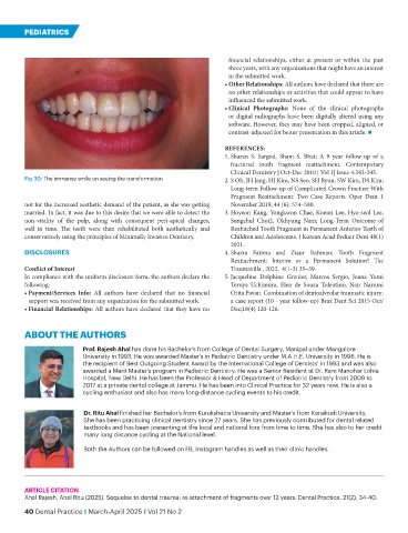 well in time. The teeth were then rehabilitated both aesthetically and Reattached Tooth Fragment in Permanent Anterior Teeth of