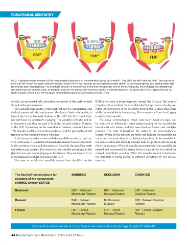 Fig 2: A graphic representation of the three possible positions of the mandible based on Smylist® - The BMP, the RMP and the FMP. The muscles in
