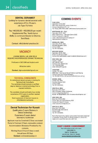 34 classifieds DENTAL TECHNOLOGY, APRIL-JUNE 2022