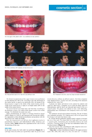 FIG 3: Measurements based on the ‘rule of 20’ using Hufriedy’s meter FIG 4: Patient with ‘wish smile’, colour test, shape and dental measurement